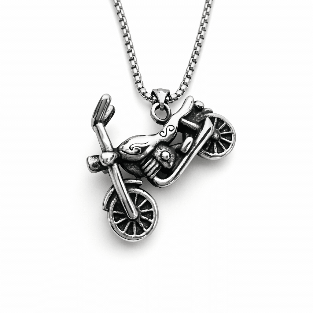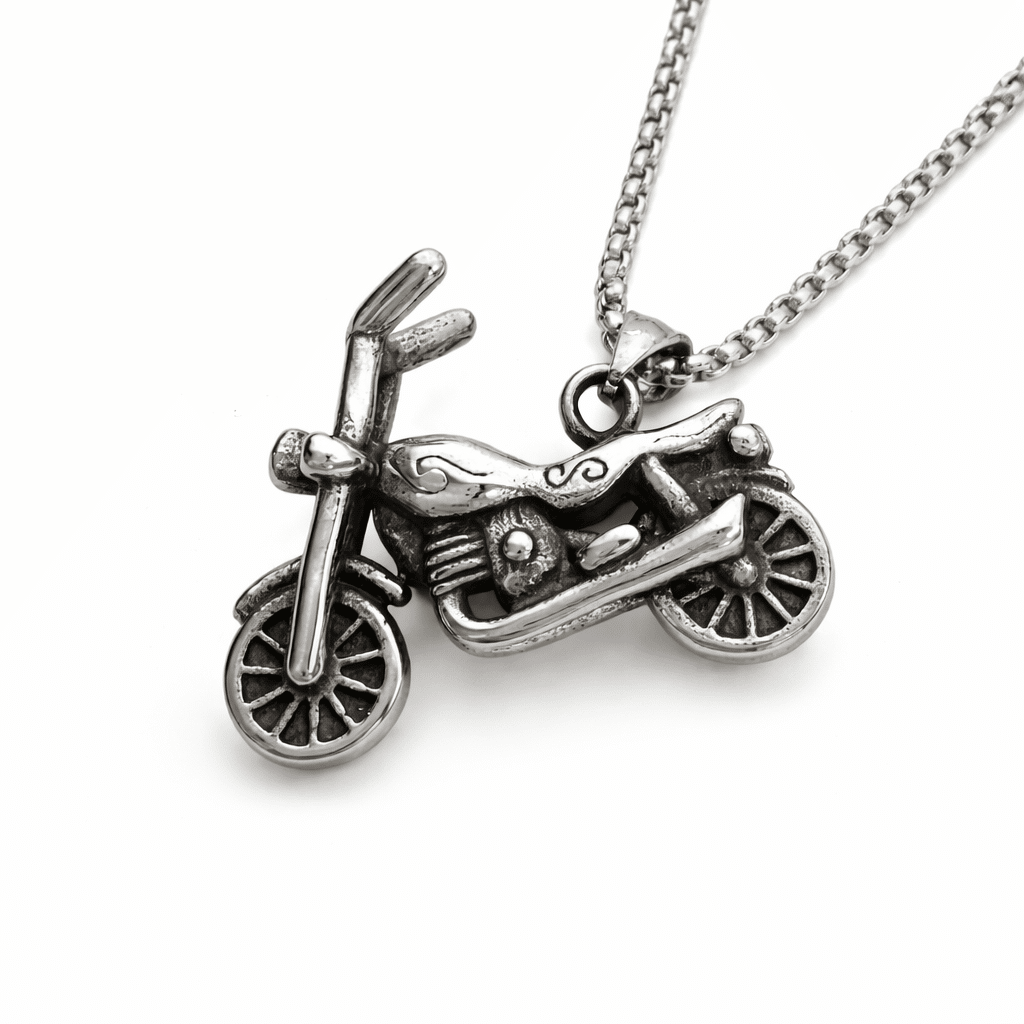 Přívěšek motorka Chopper je originální šperk z chirurgické oceli, který zaujme na první pohled svým výrazným motorkářským designem.